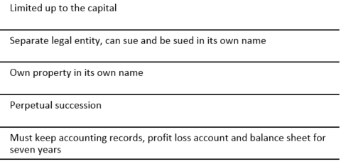 | What is the use of a Separate legal personality ? | 1. Can sue and be sued in its own name 2. Can own property in its own name 3. Perpetual succession 4. Members has limited liability |