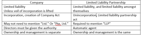 | What are the differences between Company and Limited Liability Partnership ? | |