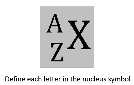 A IS MASS NUMBER, Z IS ATOMIC NUMBER AND X IS ATOMIC SYMBOL OR ELEMENT SYMBOL. |