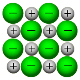| In ionic bonding what is every ion surrounded by? | Oppositely charged ions. |