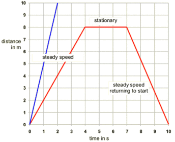 | Distance Time Graphs | Distance time graphs allow a collection of data to be shown. The gradient of a distance-time graph tells you about the speed of the object. A higher speed = steeper gradient. A straight line indicates that the speed is constant. |