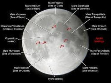 | 1.2a - Identify the Moon’s principal features, including the Sea of Tranquility, Ocean of Storms, Sea of Crises, the craters Tycho, Copernicus and Kepler, and the Apennine mountain range . (Answers shown on reverse + Appenine mountains) |