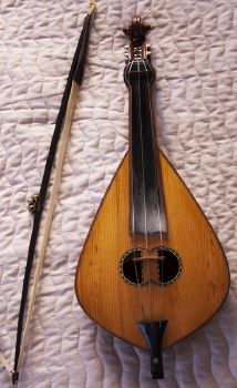 -Birnenförmige, gestrichene Kurzhalslaute -3 Metal Saiten in Quinten gestimmt -am Knie abgestützt -Saiten werden nicht niedergedrückt -Bogen mit Fingern gespannt. -Erwähnung auf Kreta in venetia. Zeit |