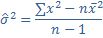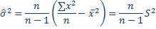 Best unbiased estimator of population variance: σ̂^2S^2 = variance of the sample