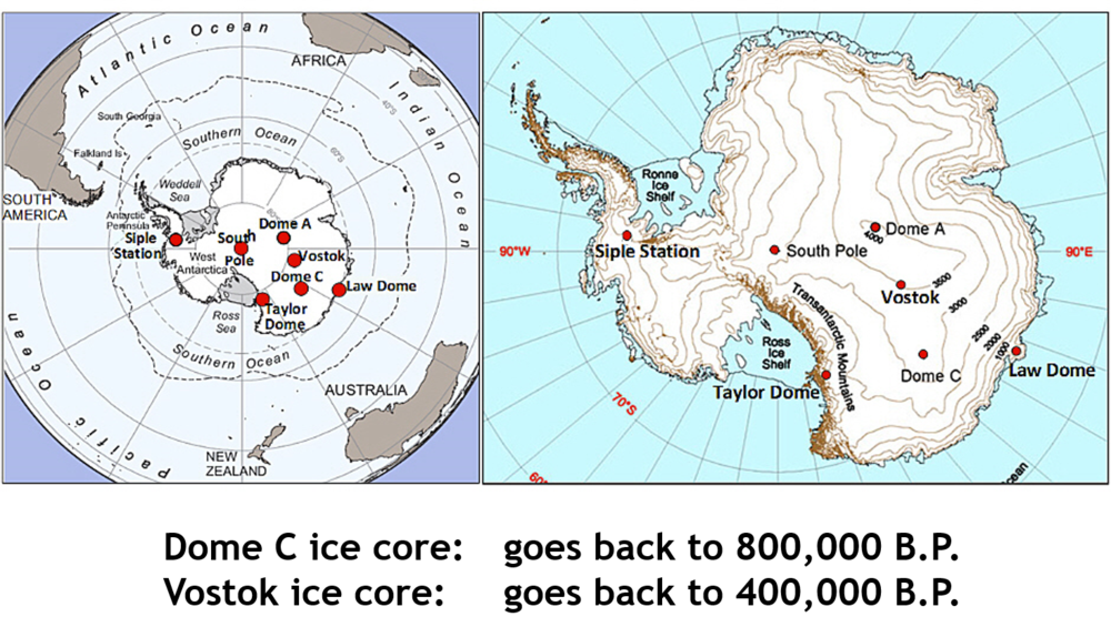 Ice coes reveal bygone climates windborn dust deposits cause banding with annual layers - help with dating also reveal past greenhouse gas concentrations