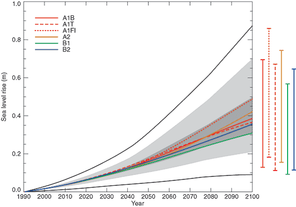 measurement of sealevel rise - tide gauges - local -satellite altimneters - global complemented by models which consider -ocean currents and tides -thermal expansion -volume gain current trend ~ 3mm per annume