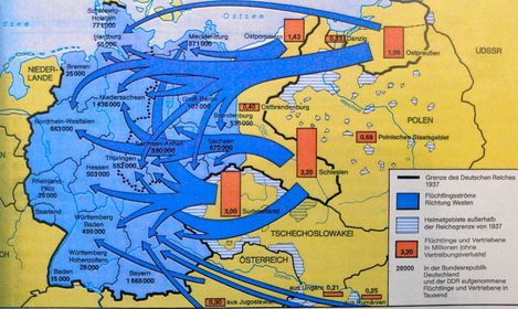 - Über 3 Mio Schlesier, ca. 3 Mio Sudeten und fast 2 Mio Ostpreußen- insgesamt über 12 Mio Menschen flüchten in die 4 Besatzungszonen- Etwa 2,1 Mio Deutsche starben durch Flucht und Vertreibung--> Gehört zu den einscheidensten Erlebnissen des 2. WK- insgesamt verloren ca. 20 Mio Menschen in Europa ihre Heimat (Tschechen, Slowenen, Ukrainer, Polen, Ungarn, Litauer, Deutsche)
