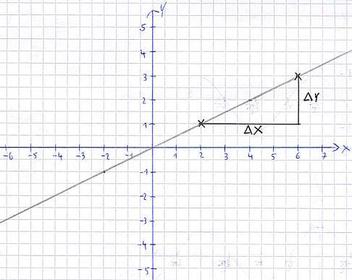 Steigung = Δy : Δx -> Steigung = 2 : 4 = 0,5