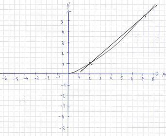 5,5. Verbinde diese beiden Punkte. Du erhälst eine Sekante, sprich