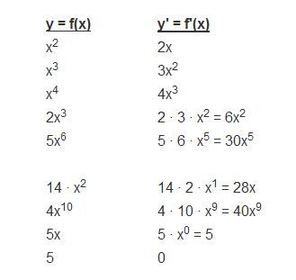 Ziel ist es hier, Funktionen wie zum Beispiel f(x) = y = x4 oder f(x) = y = 3x2 oder auch f(x) = y = 5x abzuleiten. Allgemein gilt: y = xn mit der Ableitung y' = n · xn-1.