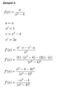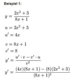 Diese kommt zum Einsatz, wenn ihr einen Bruch ableiten wollt. Schau dir die Schreibweisen genau an, bevor dann auf der nächsten Folien zwei Beispiele dir alles näherbringen.