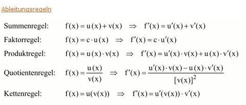 Kenne die wichtigsten Ableitungsregeln