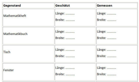 Schreibt eure Schätzergebnisse in die Tabelle.