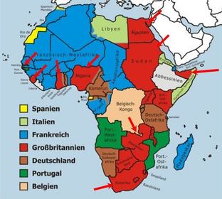 Zu den afrikanischen Kolonien zählten für GB u.a.: Ägypten, Sudan, Britisch-Ostafrika, Rhodesien, Südafrika, Nigeria etc.