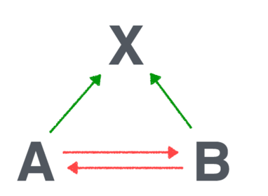Caption: : A - X; B - X : Sachebene A - B : Beziehungsebene