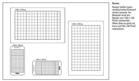 Die Vielzahl an Geräten mit unterschiedlichen Abmessungen und Auflösungen macht pixelgenaues Layouten unmöglich. Sie müssen für jedes Gerät ein eigenes Layout vorsehen.Durch die Verwendung von (relativen) Prozentangaben umgehen Sie dieses Problem. Der Entwurf bezieht sich dabei nicht auf die Breite des Displays in Pixel, sondern auf seine maximale Breite von 100%.Prozentangaben führen dann auf allen Geräten zu einer proportional gleichen Aufteilung.Auch wenn später Prozent- und keine Pixelangaben verwendet werden, ist der Entwurf im Pixelraster sinnvoll. Auf diese Weise können Sie das Raster in Photoshop oder Illustrator planen.