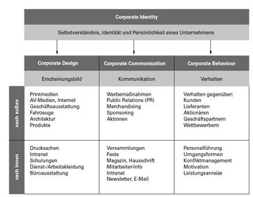 schlägt die Brücke zwischen Erscheinungsbild (Corporate Design), Kommunikation (Corporate Communication) und Verhalten (Corporate Behaviour)