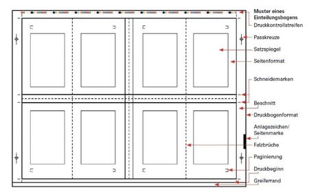 Druckbogen muss vor dem Falzen erfolgen. Die Anordnung der Einzelseiten