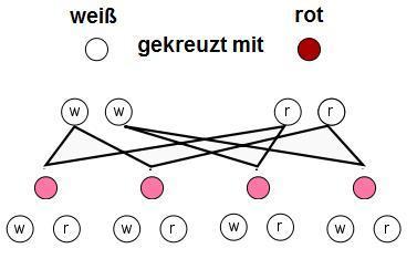 Nun kann man aber auch Pflanzen mit roten und weißen Blüten kreuzen und