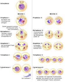 genau wie die Mitose ab, nur mit dem feinen Unterschied, dass am Ende ein haploider Chromosomensatz