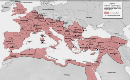 -Punische Kriege: im 3. und 2. Jh. v.Chr.-Kriege im Osten: bis zum 1 Jh. v.Chr.-lange Kriege entwurzelten die röm. Gesellschaft (Reiche werden reicher, Arme ärmer)-mehrer Politiker versuchen die Krise zu beheben:Landreformer Tiberius und Gaius Gracchus, Heerführer Marius, Diktatoren Sulla und Cäsar-nach Cäsars Ermordung 44 n.Chr. herrschte Oktavion, sowie Augustu salleine über das Weltreich-Kaiserzeit:unter Augustus begann im 1 Jh. v.Chr. mit dem Prinzipat der Übergang zwischen Republik und Monarchie -> Friedenszeit (ca. 200 Jahre)- Sicherung dieses Reiches (ca. 40 Provinzen) durch ein Berufsheer und den Limes