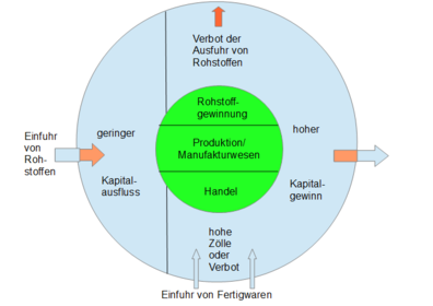 -Steigerung der Ausfuhr, Beschränkung der Einfuhr-Verlagen und Manufakturen-Landwirtschaft wurde vernachlässigt-Profit vor allem für Kaufleute, Bankiers, Verleger, Manufakturbesitzer