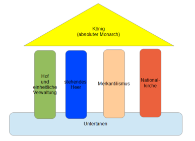 Modell Frankreich:-seit 1614 stärkten die Könige ihre Macht auf Kosten des Adels, und unterstellten alle Untertanen direkt ihrer Befehls- und Zwangsgewalt-Ludwig XIV. baute seine Macht nach Widerständen der Bevölkerung und des Adels zusammenbrachen zur absoluten Herrschaft aus-es enstand ein stehendes Heer, sowie der Hof als Mittelpunkt des Staates