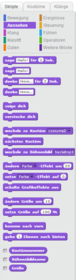 Die Kostüme ändern das Aussehen. Sie werden deshalb mit den violette Blöcken gesteuert.Auch wenn Figuren sprechen oder denken ändern sie ihr Aussehen (Sprechblasen werden hinzugefügt).