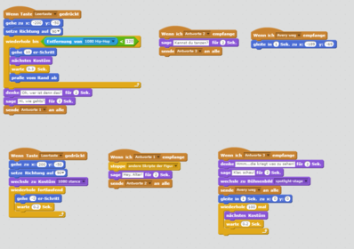 Falls du keine Zeit hast, das Programm nachzubauen, oder etwas nicht funktioniert, dann findest du unter dem Link unten das Programm um die Programm-Bestandteile anzuschauen.https://scratch.mit.edu/projects/121140953/
