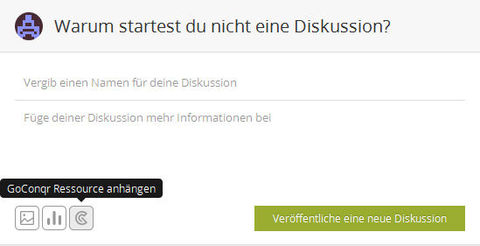 Ressourcen teilen ist jetzt einfacher als je zuvor. Dazu gibt es zwei Möglichkeiten:1. Durch das Handlungsmenü der jeweiligen Ressource: Wähle unter "Teilen" mit einer Gruppe teilen aus. 2. Direkt über die Aktivitäts Registerkarte einer Gruppe: Starte eine neue Diskussion und klicke auf "GoConqr Ressource anhängen".Ressourcen, die bereits von anderen Mitgliedern mit der Gruppe geteilt wurden, findest du unter der Registerkarte "Lernressourcen".