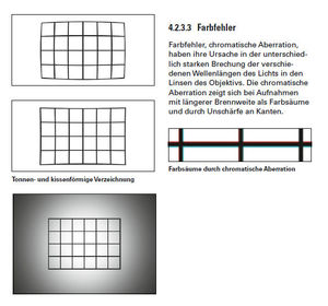 Caption: : Vignettierung, Tonnen- und kissenförmige Verzeichnung sowie Farbsäume durch chromatische Aberration