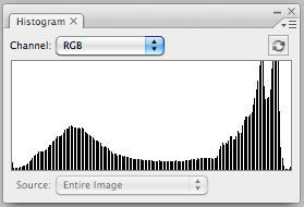 Caption: : Das Bild des Histogramms hat auf Grund fehlender Tonstufen keine optimale Tonwertwiederhabe (Tonwertabrisse).