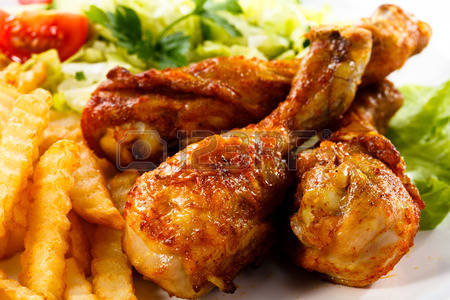 40049555 Grilled Chicken Legs With Chips And Vegetables (image/jpeg)