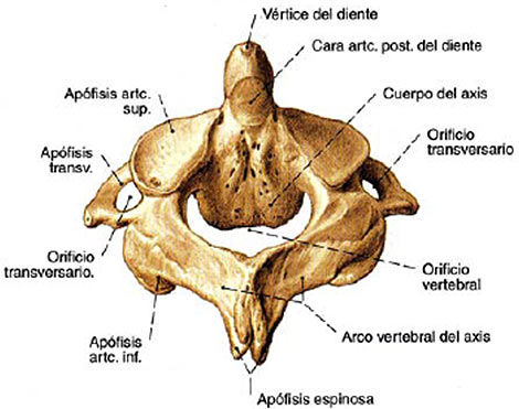 una con la otra. Sus apófisis transversas son cortas y delgadas mientras