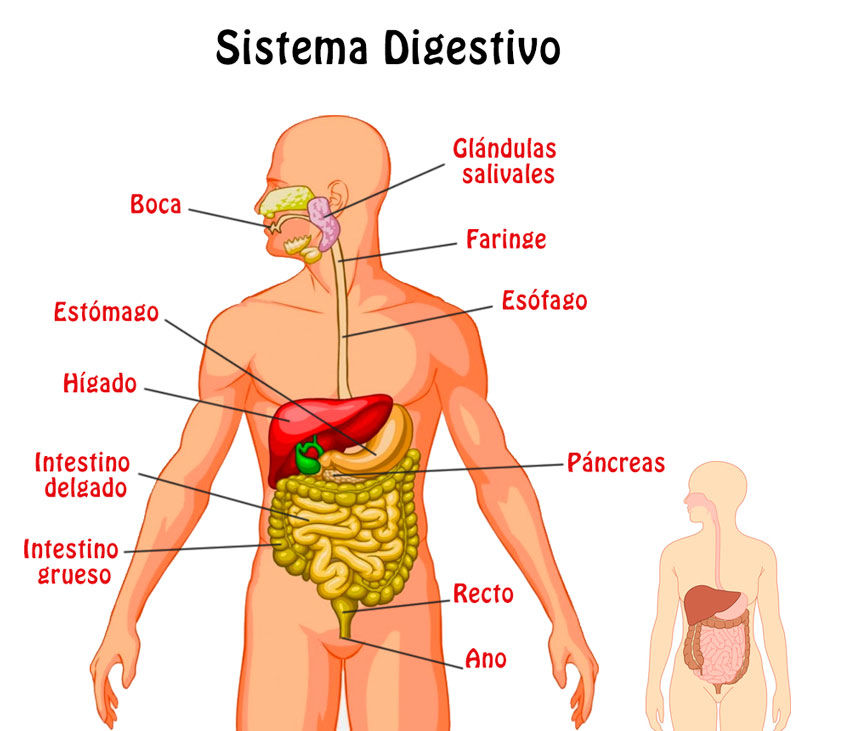 El aparato digestivo es el conjunto de órganos encargados del proceso de la digestión, es decir, la transformación de los alimentos para que puedan ser absorbidos y utilizados por las células del organismo.