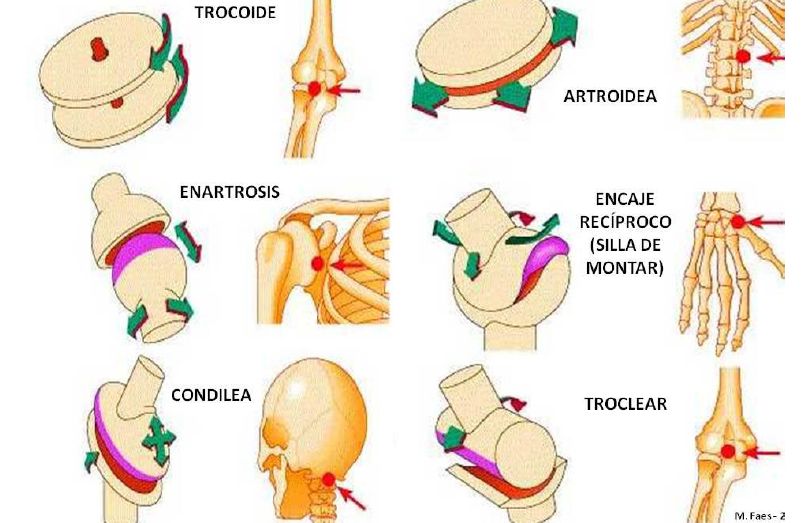 Las articulaciones constituyen los puntos de contacto entre los diversos huesos que forman el esqueleto. En el cuerpo humano hay más de 200 articulaciones, pero son de distinto tipo y con funciones diversas: unas son responsables de los movimientos de distintas partes del esqueleto, mientras que otras, en cambio, tienen poca movilidad o son fijas y sirven para sostener y mantener unidas otras partes del mismo