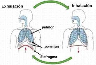 La inspiración, o entrada de aire a los pulmones.