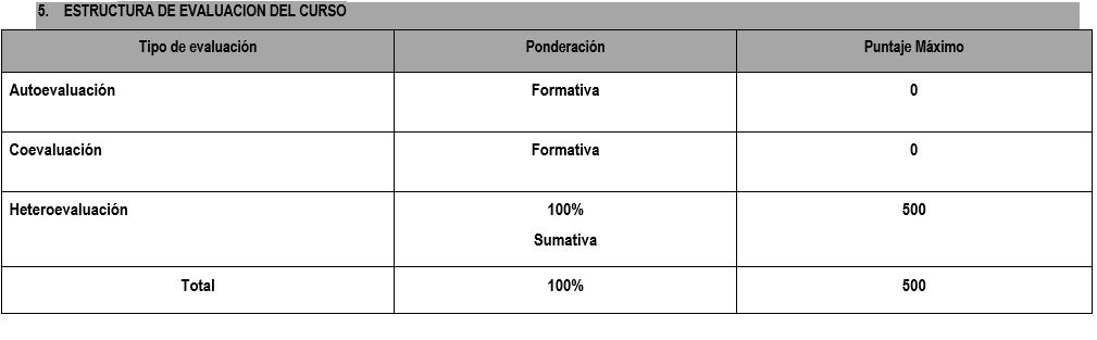 sumatoria del aprendizaje, conforme la estructura evaluativa definida en el Syllabus del curso.