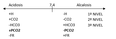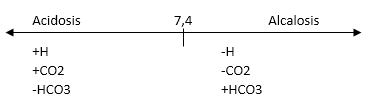Este desequilibrio produce una variacion en el valor del pH (rango normal 7,38-7,42), y altera la concentracion de CO2 y HCO3