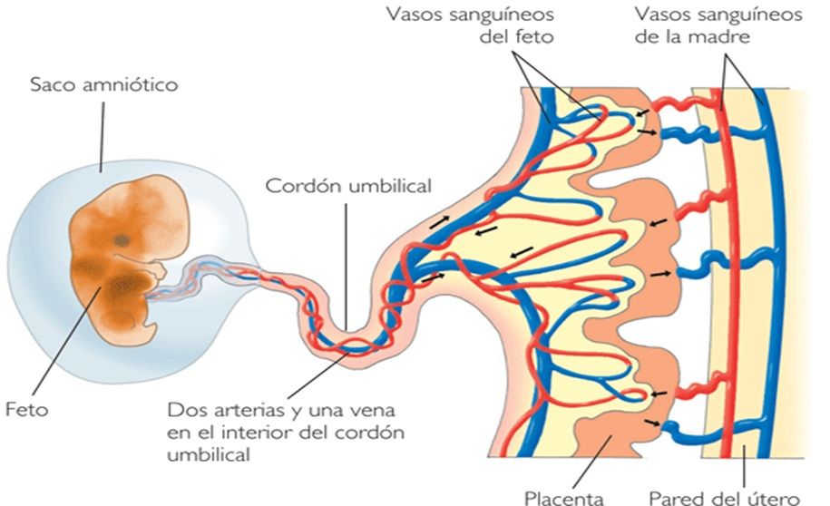 Concentración de la sustancia en plasma de la madre, y en sangre fetal