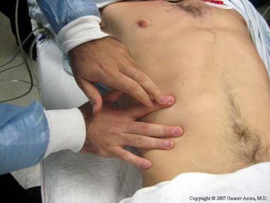 Se manifiesta resistencia en el abdomen al deprimirlo durante la palpacion