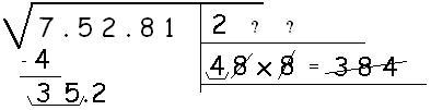 6.- Se añade esa cifra y se multiplica por ella. Si es mayor que el resto, hay que probar el anterior, y se resta.