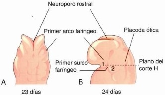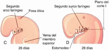 Al final de la 4a semana existen 4 pares de arcos faríngeos visibles.