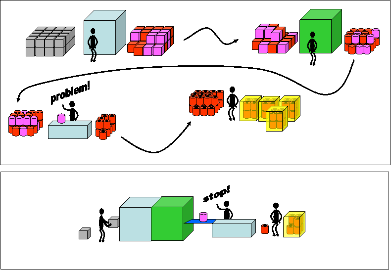 entregas frecuentes de pequeños lotes de partes o componentes.