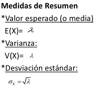 Poisson es igual a λ. La varianza (σ2 ) en la distribución de Poisson también es igual a λ. La desviacion