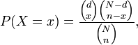 La función de probabilidad de una variable aleatoria con distribución hipergeométrica puede deducirse a través de razonamientos combinatorios y es igual a