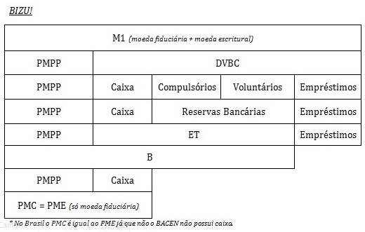 fiduciária e moeda escritural). O Banco Central gera a moeda
