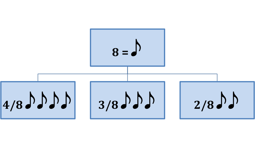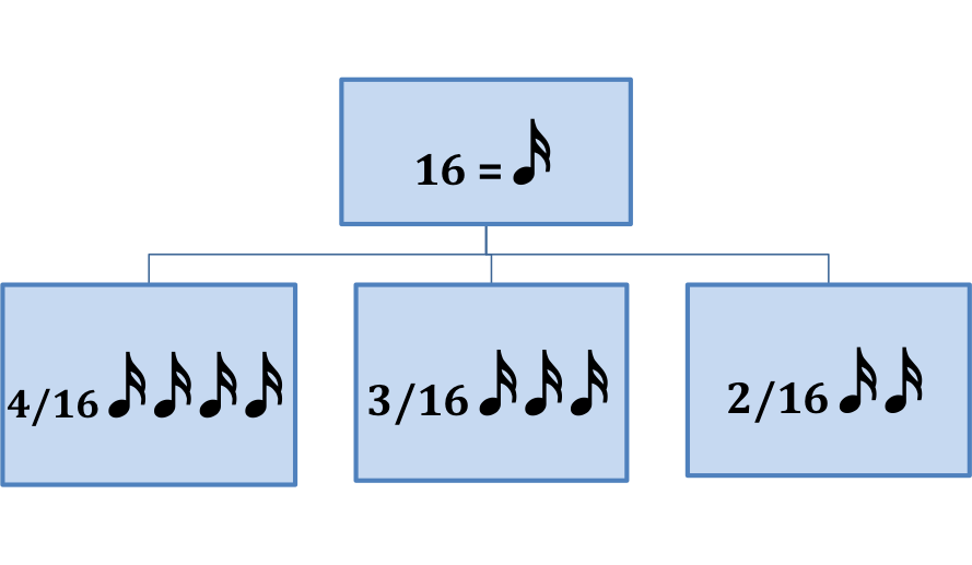 Puede tener los números 1 (redonda), 2 (blanca), 4 (negra), 8 (corchea) ó 16 (semicorchea)