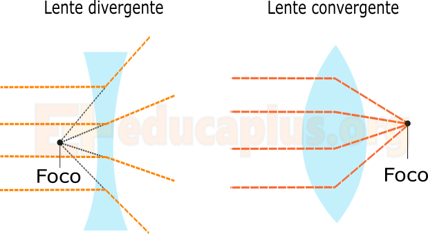 Convergentes:Concentran los rayos de luz que pasan a traves de ellas en un punto llamado foco.