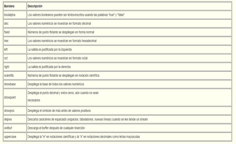 C++ define algunas banderas de formato para entradas y salidas estándar, las cuales pueden ser